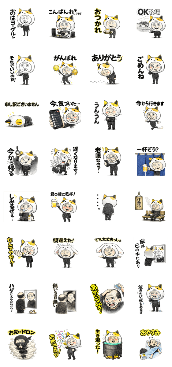 | スタンプ説明 | ちょっと疲れた毎日に寄り添う、猫おじさんのスタンプです。 |