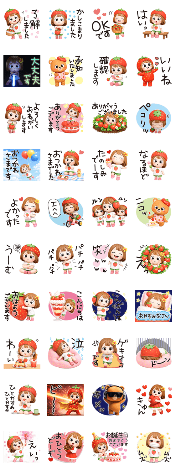 はな子✿あいさつ春いちごちびドール -LINEスタンプマニア