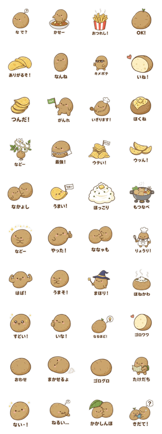 | スタンプ説明 | I am a cute potato learning Japanese. Please use me only with close friends. |