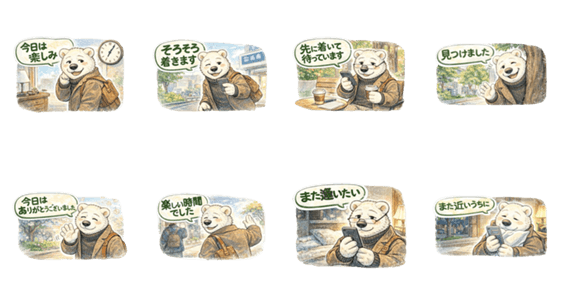 | スタンプ説明 | 可愛すぎないおじさんシロクマ#3 待ち合わせから解散後まで |