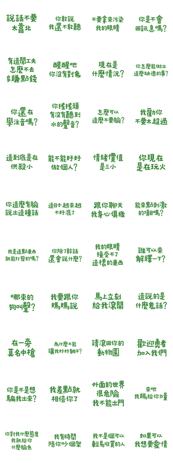 | スタンプ説明 | What exactly is being said? Green 20 |