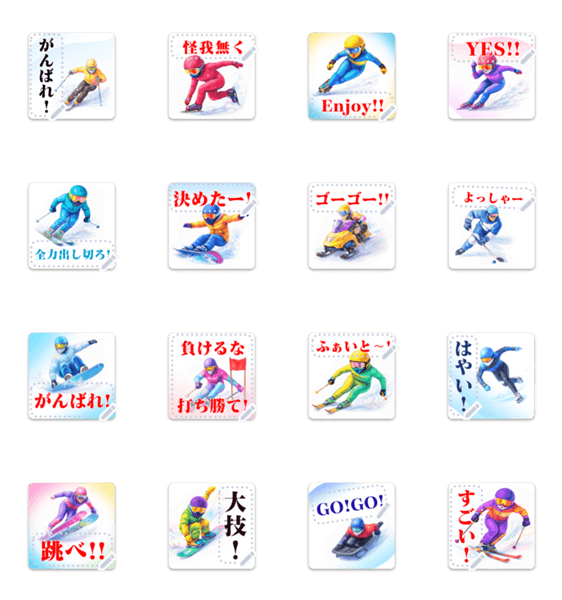 | スタンプ説明 | スノーボード・スピードスケートやホッケーなどのウィンタースポーツのメッセージスタンプ⭐自由に文を書き込めるので推しの選手や応援言葉も入力できちゃいます♪ 現在この商品は一部のスマートフォン版LINE 10.3.0以上のトークルームでのみ使用できます。動作環境の最新情報はヘルプをご確認ください。 |
