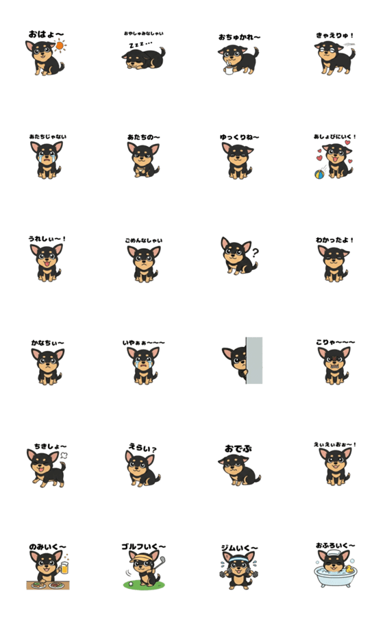 | スタンプ説明 | Meet Machiko, the black chihuahua! This set of 25 stickers covers greetings, emotions, and hobbies like golf and training. Let cute Machiko liven up your chats! |
