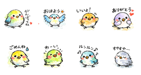 | スタンプ説明 | おばあちゃんがひ孫のために心をこめて描いたあたたかい小鳥スタンプです。 毎日使える言葉入り。やさしい水彩と墨のぬくもりで、気持ちが伝わります。 |
