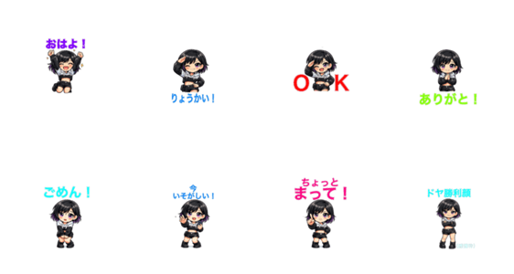 | スタンプ説明 | 元気いっぱいのちびキャラがトークを盛り上げる! おはよ ありがとう など日常で使いやすい言葉をたっぷり収録。 かわいくてノリのいいリアクションで毎日をもっと楽しく♪ |