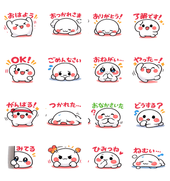 | スタンプ説明 | 白くてもちっとした謎のいきもの「白もち」のスタンプです。 毎日のトークで使いやすい言葉を集めました。 ゆるくてかわいい白もちが、あなたの気持ちをやさしく伝えます。 |