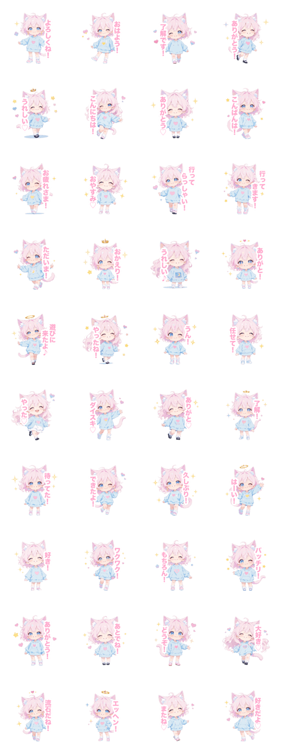 | スタンプ説明 | ねこ/猫/猫耳/かわいい/可愛い/量産型/ピンク/日常/挨拶/ふわふわ/あざとい/ゆめかわ/パステル/女の子/女子/ガーリー/ミニキャラ/キュート/ファンシー/毎日使える/ピンク髪 |