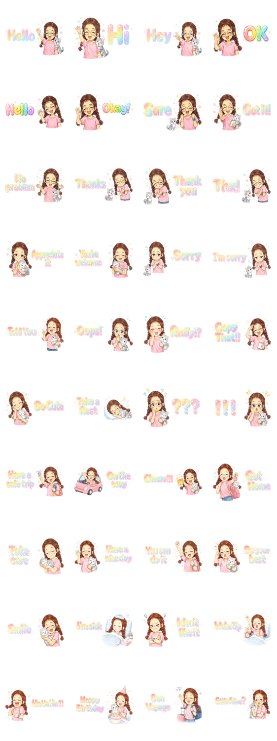 | スタンプ説明 | A super cute LINE sticker set featuring a chibi girl and her adorable gray cat. Perfect for daily chats, expressing emotions like happy, funny,teasing, cheering |