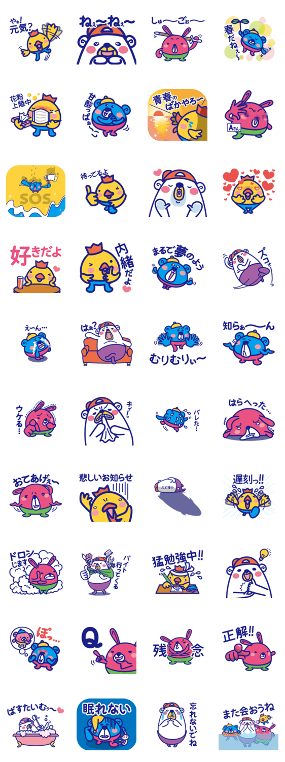 お待たせしました!第3弾!学生さんに使って欲しいスタンプです。ぶるさん、ついに春到来か!?大人達も使えるかもよ。