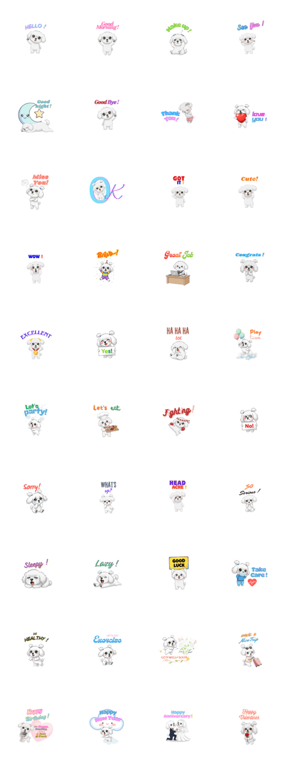白ネコのあいうえお・・・ってるスタンプ