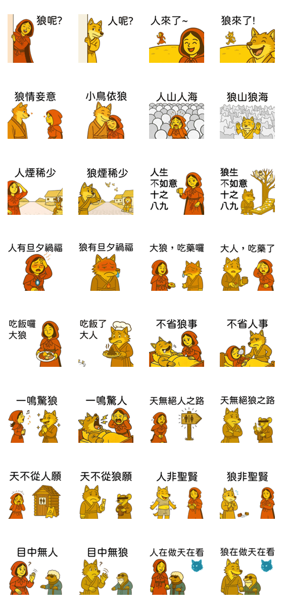 | スタンプ説明 | Cute daily life stickers featuring wordplay by Big Wolf and Little Red. |