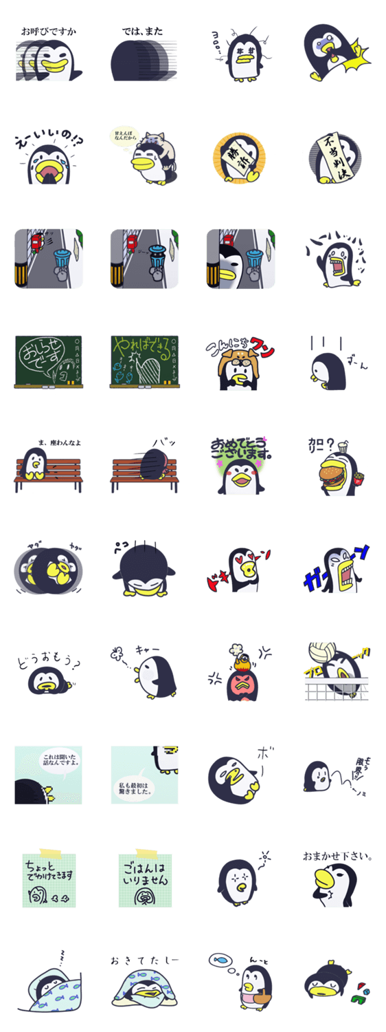 第2弾 ぐうたらでアクティブ!?なペンギンのスタンプです。
