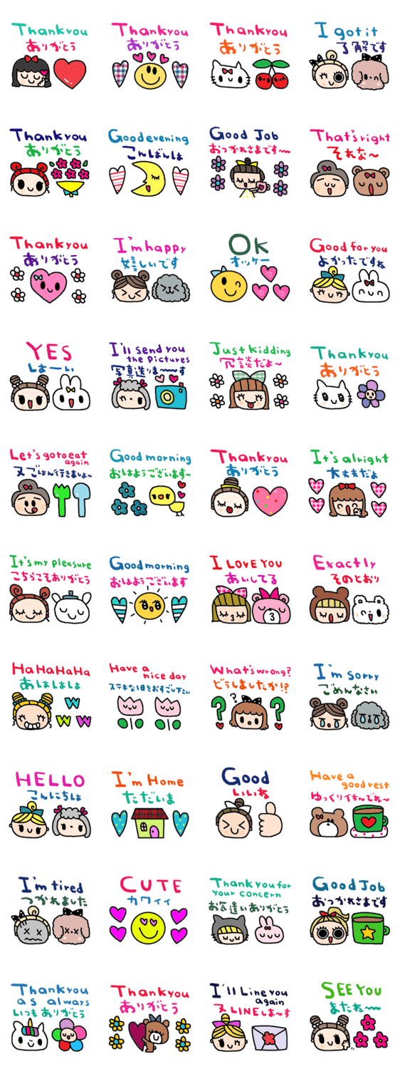 シンプルな日常会話スタンプです。お気遣いスタンプ 日本語英語スタンプ