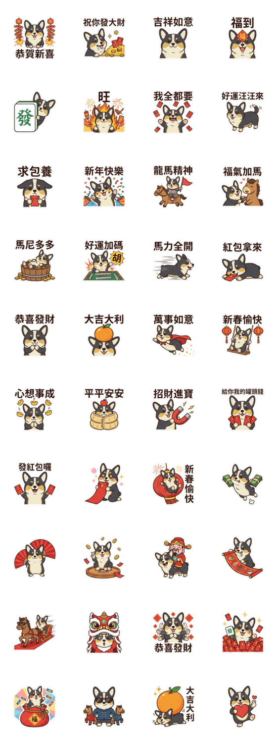 | スタンプ説明 | Celebrate the Year of the Horse with Corgi Whiskey! Festive New Year greetings and daily blessings to spread joy and luck with your favorite lazy corgi. |