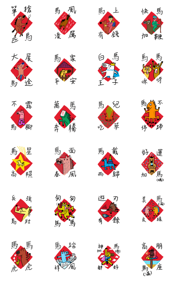 中国の旧正月ですが、馬は何をしているでしょうか? ※このスタンプはトークルームで大きく表示されるBIGスタンプです。