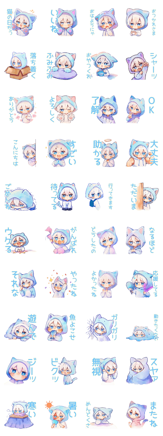 | スタンプ説明 | 2月22日猫の日!白猫耳パーカーの男の子スタンプ。猫/挨拶/日常/男子/かわいい/癒し/推し/毎日/大人/彼氏/シンプル/友達/恋人/使える/ねこ |