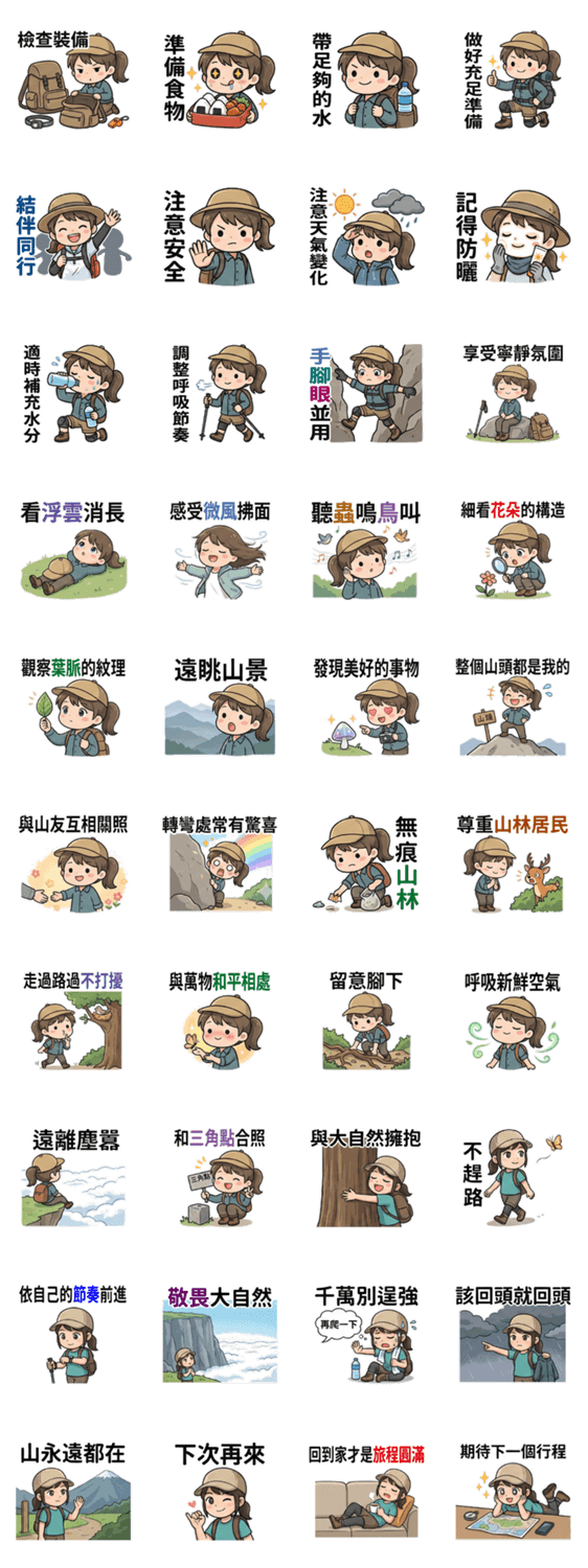 | スタンプ説明 | The mountain is there. Let's pack our bags and set off! Genki Lan-Jiang will be with you. |