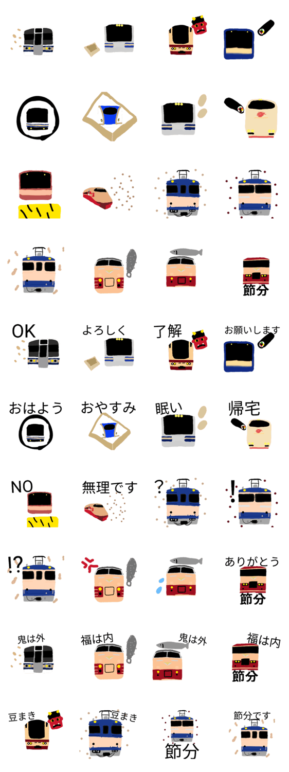 節分にぴったりの電車スタンプ -LINEスタンプマニア