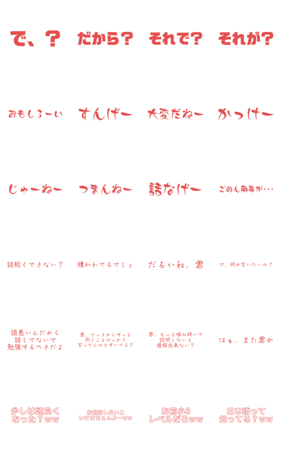 もっと色々なスタンプを出して欲しいです可愛いので自信を持ってガンバレ
