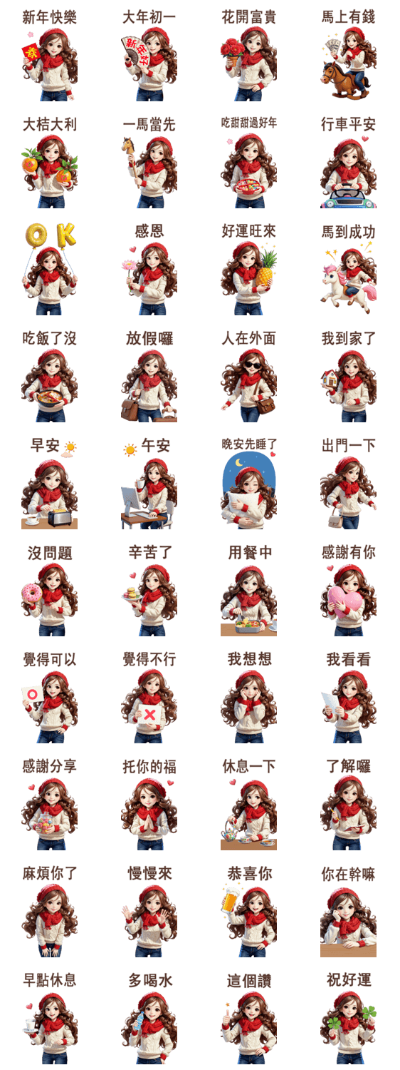 Sweet girl 67 - New Year and daily-big.(Revision) These stickers will show up extra large in chats.
