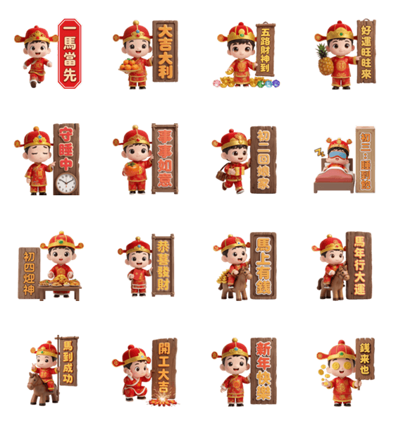 | スタンプ説明 | Celebrate 2026 Horse Year with Cute Little Boy! Features Lunar New Year greetings, asking for red envelopes & daily chat. Good luck to you! |