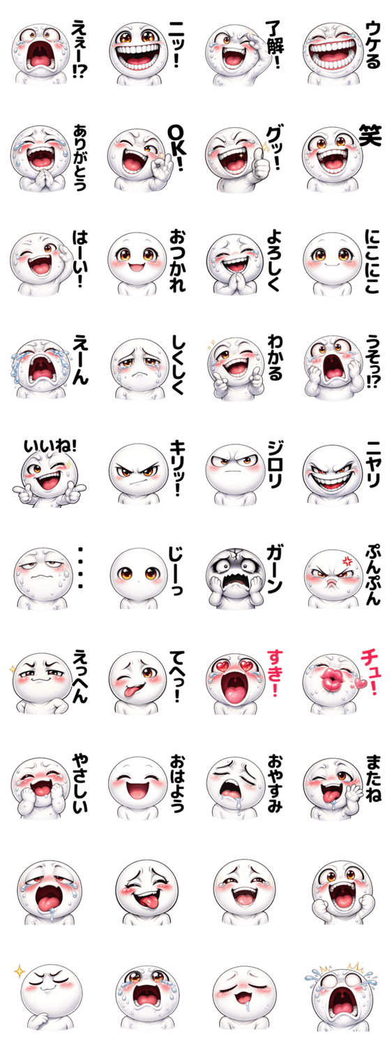 表情強めのリアクションスタンプ。 日常で使いやすい言葉そろってます。