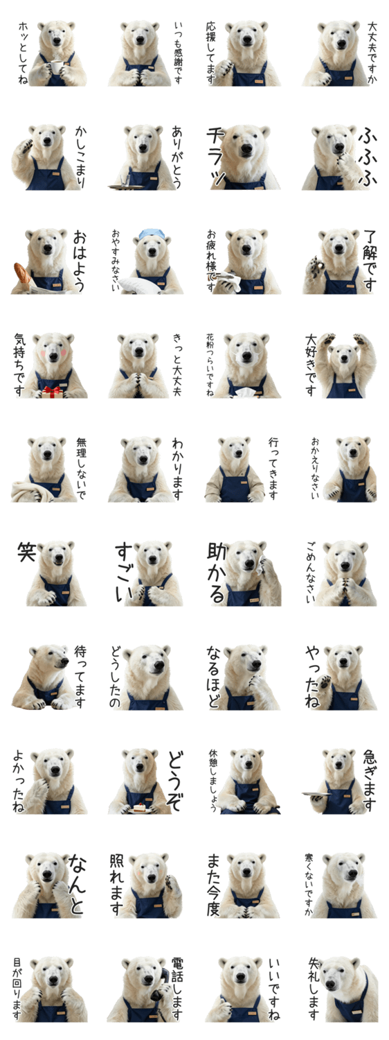 | スタンプ説明 | 敬語で癒すしろくま店長の、心温まる気遣いスタンプ。仕事や職場、日常で使える丁寧な言葉で、大人かわいく相手を労います。 |
