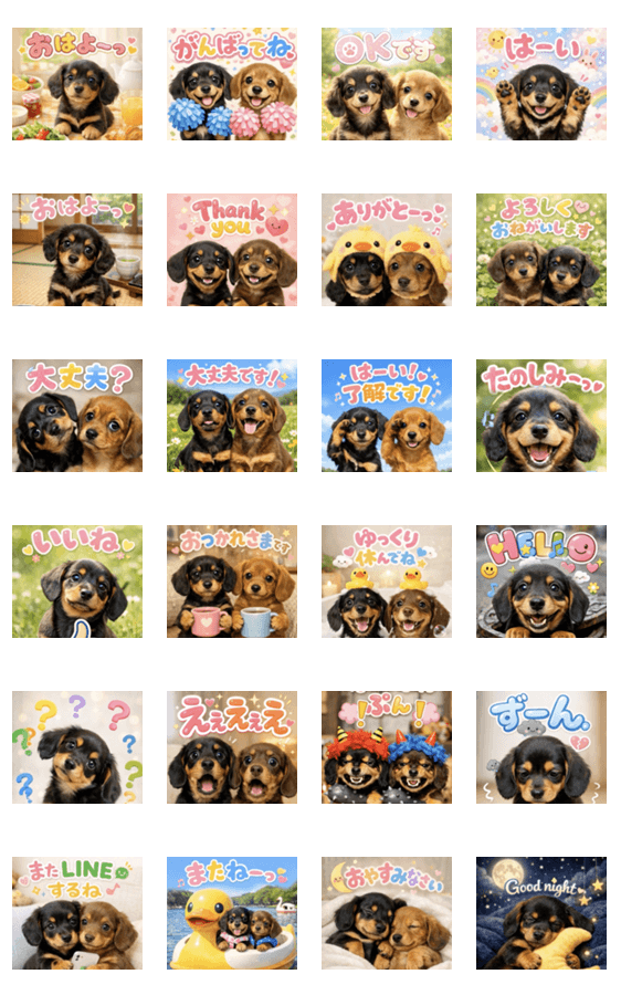 毎日の会話で使える♡ダックスフントの基本のポップアップスタンプです。ダックスフンド