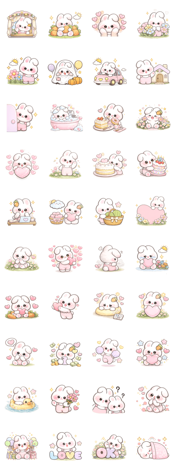 | スタンプ説明 | White bunny and rice ball sticker for everyday use (no text). |