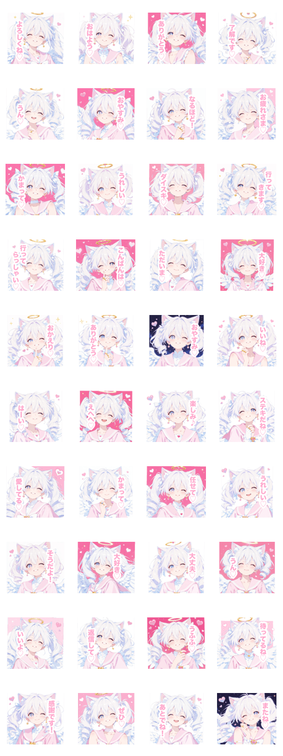 | スタンプ説明 | かわいい/可愛い/ふわふわ/あざとい/パステル/猫耳/ねこみみ/美少女/女の子/女子/量産型/地雷系/ピンク/ハート/癒し/挨拶/日常/毎日使える/ガーリー/ファンシー/彼女/天使 |