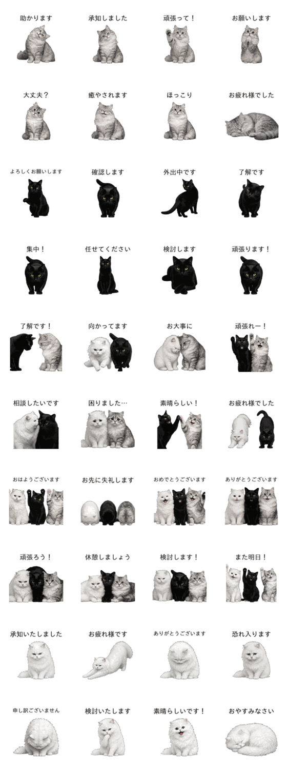 | スタンプ説明 | かわいいねこたちが、毎日のトークを楽しくしてくれるスタンプです。 シンプルで使いやすく、どんな場面でも使えます。 ゆるかわなねこたちと一緒に、気持ちを伝えよう。 |