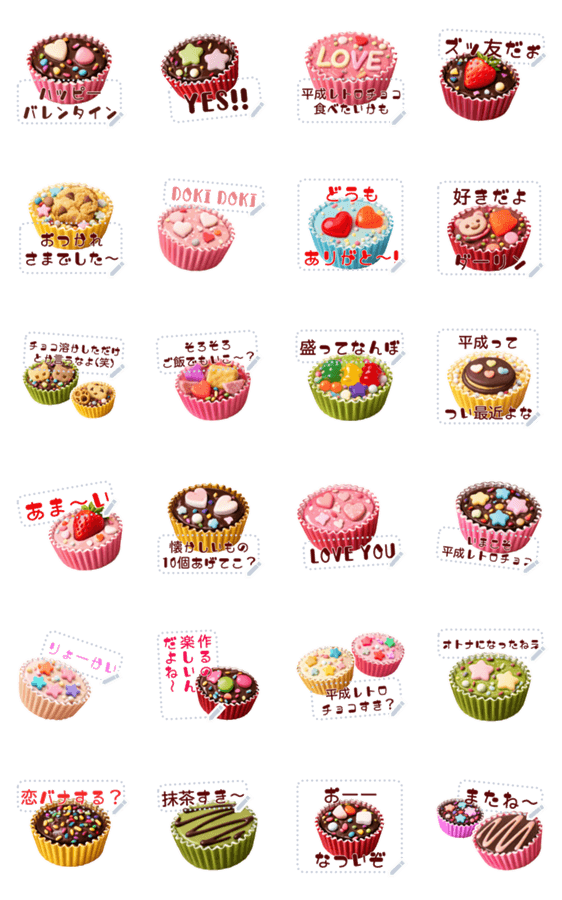 | スタンプ説明 | 懐かしい平成レトロ⭐ポップで可愛い手作りチョコレートをイメージ❤バレンタインデーに昔の同級生に送っても楽しい⭐自由に文字入力できるメッセージスタンプです♡ 現在この商品は一部のスマートフォン版LINE 10.3.0以上のトークルームでのみ使用できます。動作環境の最新情報はヘルプをご確認ください。 |