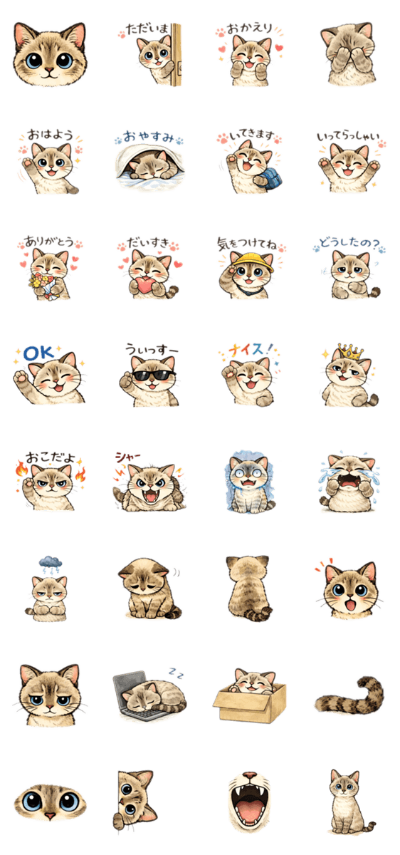 感情豊かでちょっとおてんばな猫「びび」のスタンプです。挨拶から意味わからん表情まで、ぎゅっと詰まってます。