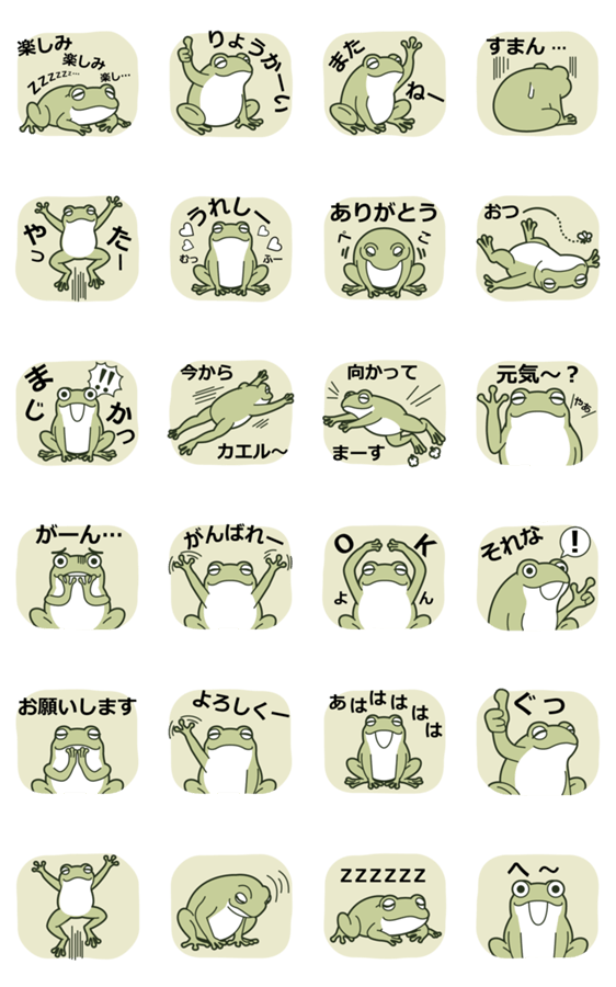 | スタンプ説明 | 「OK」「ありがとう」「またね」など、 日常のやりとりにそっと使えるポーズを集めました。 感情を出しすぎない、少し力の抜けたカエルです。 |