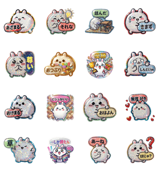 大好評!プリうさのキラキラスタンプが登場。JS流行語がたっぷり入ったオリジナルスタンプです。