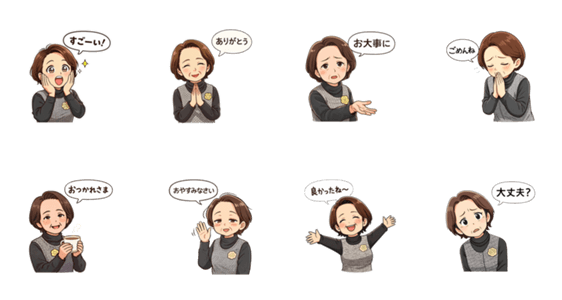 日常会話で使いやすい、やさしい雰囲気の大人女性スタンプです。