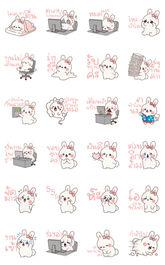 | スタンプ説明 | Stories of work and life filled with humor from bursts of enthusiasm to the exhaustion of hard work. |