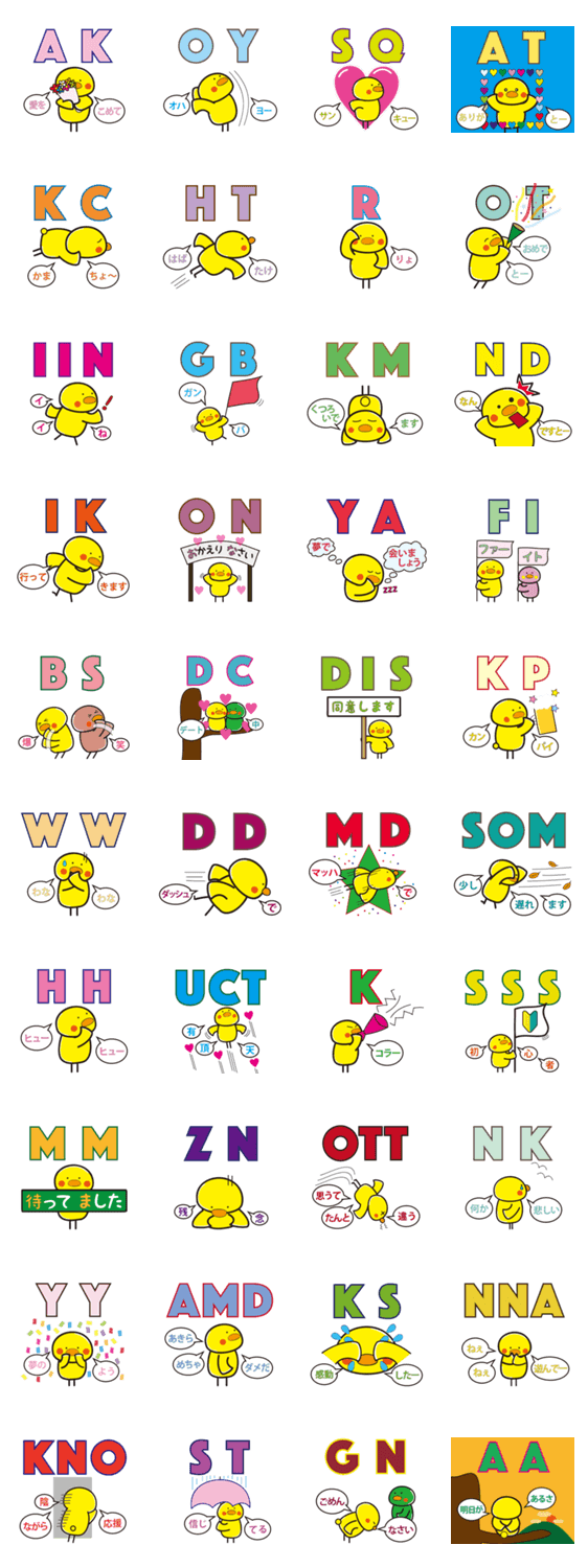 アルファベットの頭文字で会話する、短縮コトバシリーズ第6弾。今回は、初のアニマルキャラです。とにかく、かわいさ最優先で考えてみました。