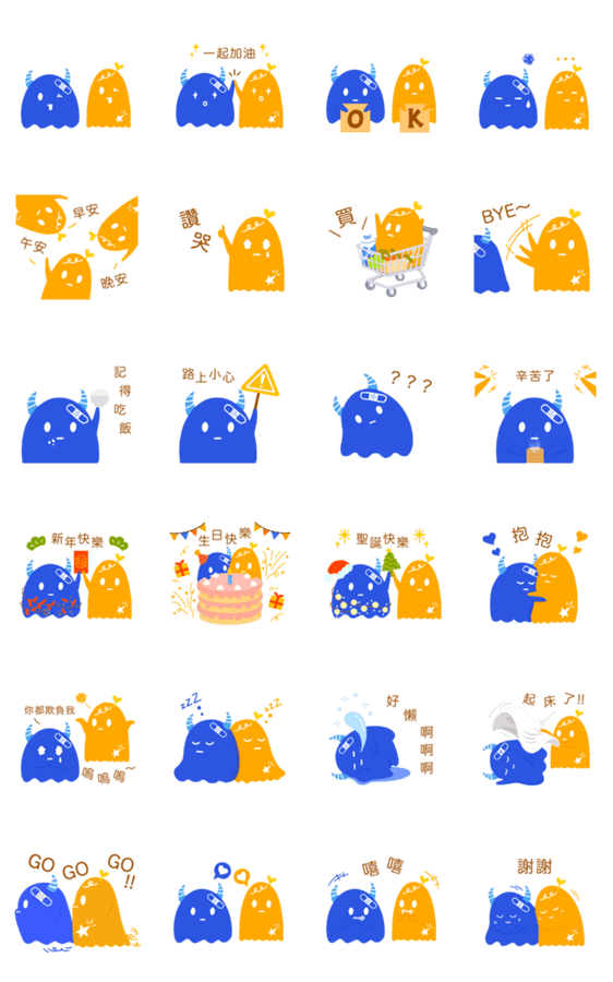 | スタンプ説明 | Blue YoYo and Yellow LeLe are emotional monsters who keep each other company. They love to share every daily life together. |