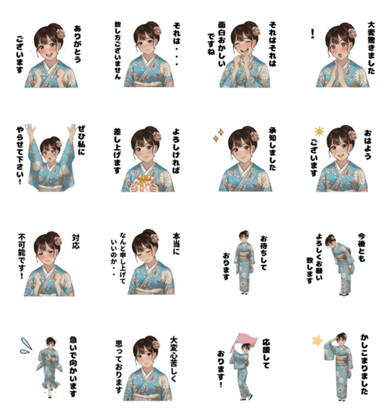着物女子恋するラブちゃんBIZ -LINEスタンプマニア