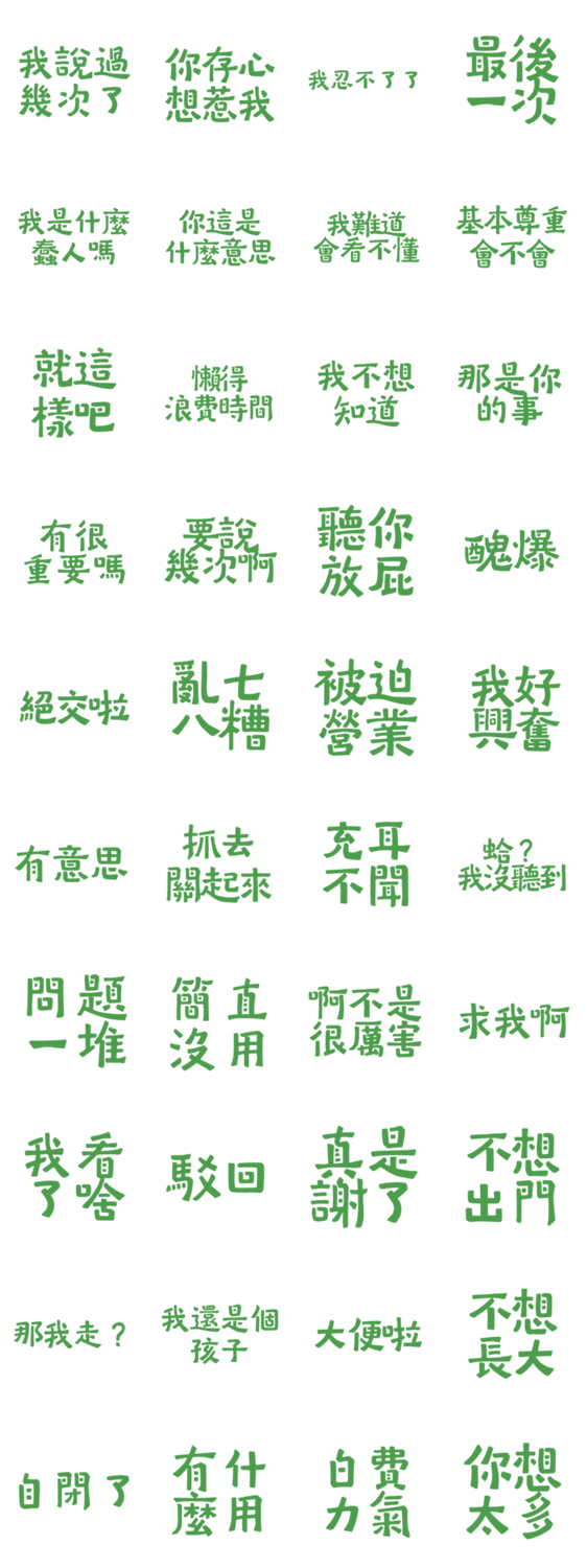 | スタンプ説明 | Am I some kind of stupid? Green 30 |