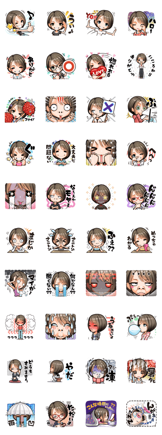 髪女子64♡ひし形ショート2 -LINEスタンプマニア