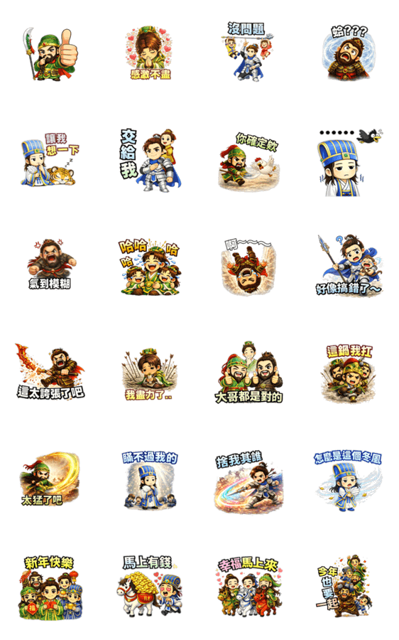 | スタンプ説明 | You think the Three Kingdoms are always at wars? Actually, they are dealing with emotions every day. Heroes are human too Let them do the talking for you. |