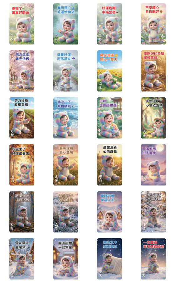| スタンプ説明 | Sending you gentle and unassuming blessings at every changing season. These stickers will show up extra large in chats. |