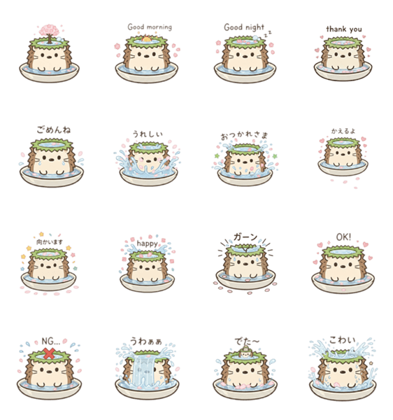 | スタンプ説明 | さらりん春ver さらりんはハリネズミの父、カッパの母から産まれた皿ネズミです。さらりんはとても静かで、感情は頭の皿で表現します。 |