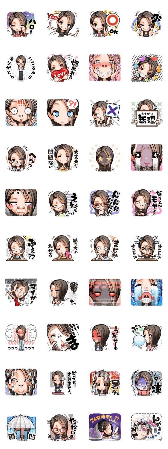 髪型で選べる♡MiTOONSの女子スタンプ【第65弾】くびれロブ パート2