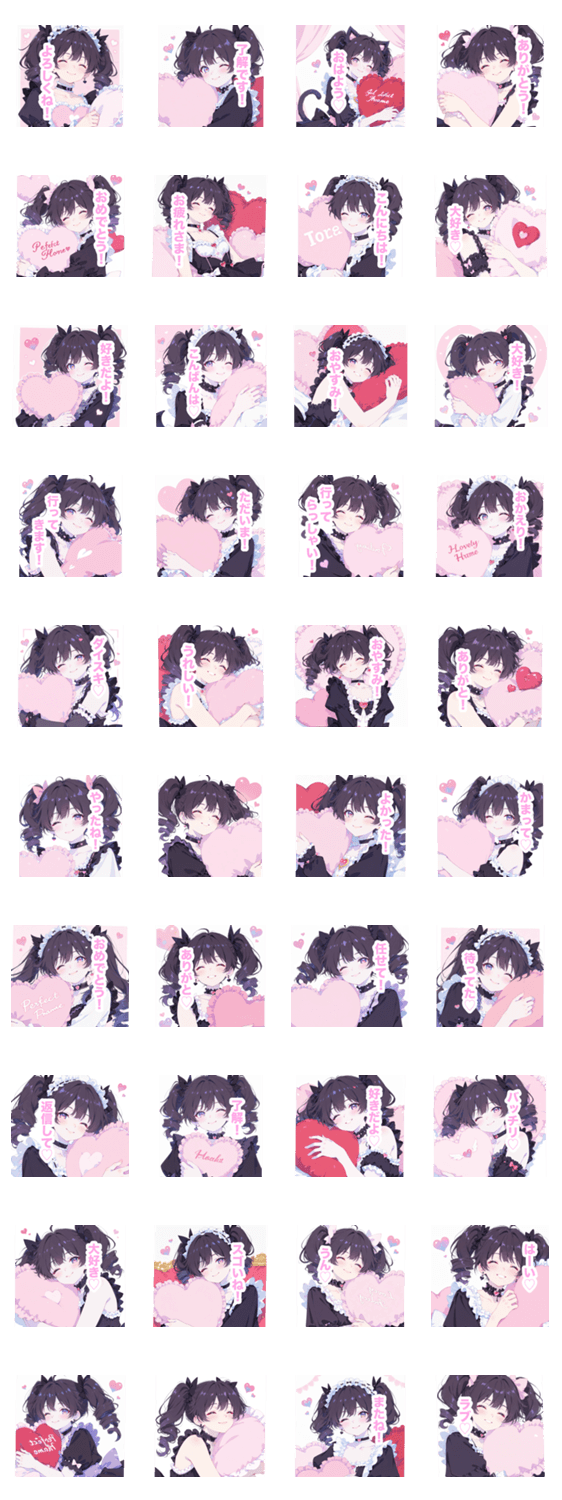 | スタンプ説明 | ロリータ/ゴシック/黒髪/ツインテール/量産型/メンヘラ/地雷系/女の子/女子/可愛い/あざとい/挨拶/日常/毎日使える/恋愛/ハート/ピンク/フリル/リボン/姫/病みかわ/依存 |