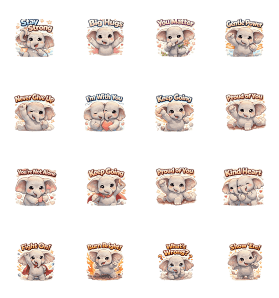 | スタンプ説明 | Adorable baby elephant reaction stickers with cute emotions for everyday chat and warm conversations. |