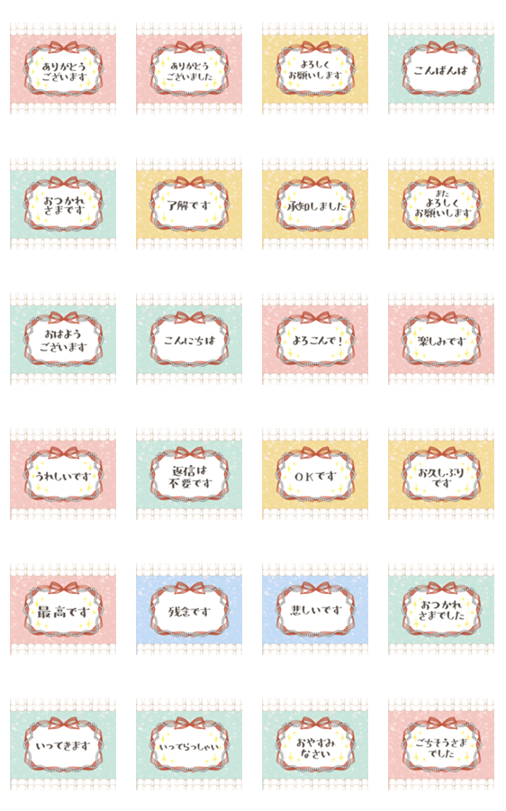 | スタンプ説明 | 上品でかわいいフリルとリボンのデザインの敬語スタンプ♡ お仕事・接客・バイト・ママ友など幅広く使え大人女子が毎日使いやすい丁寧な言葉を集めました♪ |