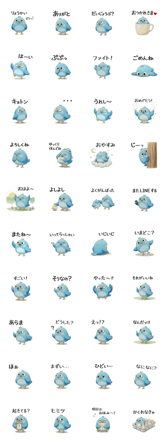 青い鳥「ブルーバードっす」の、毎日のトークで使いやすいスタンプです。